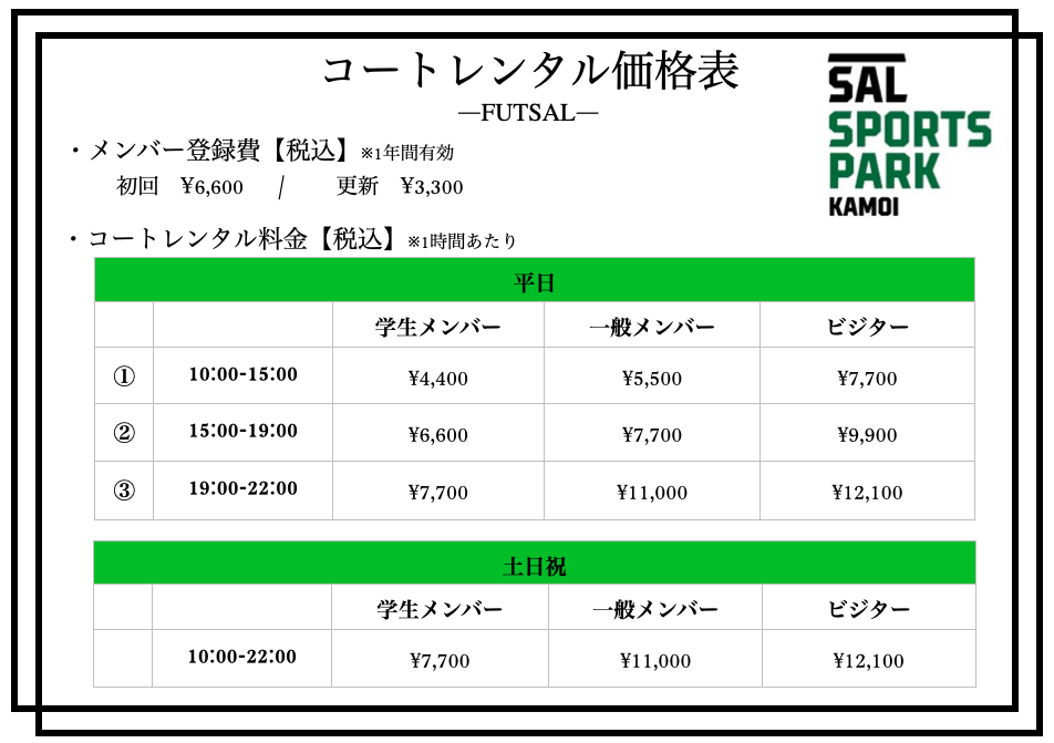 レンタルコート料金のご紹介⚽️